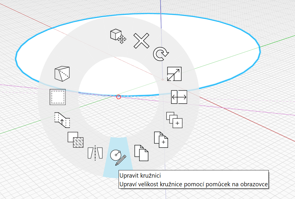 Již umístěnou kružnici můžete také upravit tak, že na ni kliknete pravým tlačítkem myši a v dolní části vyberete možnost Upravit kružnici: