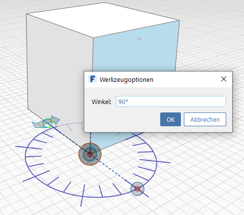 * Um die Geometrie zu ändern, klicken Sie auf eine Kante oder Fläche und geben einen neuen Winkelwert ein, indem Sie auf den angezeigten Winkel klicken.