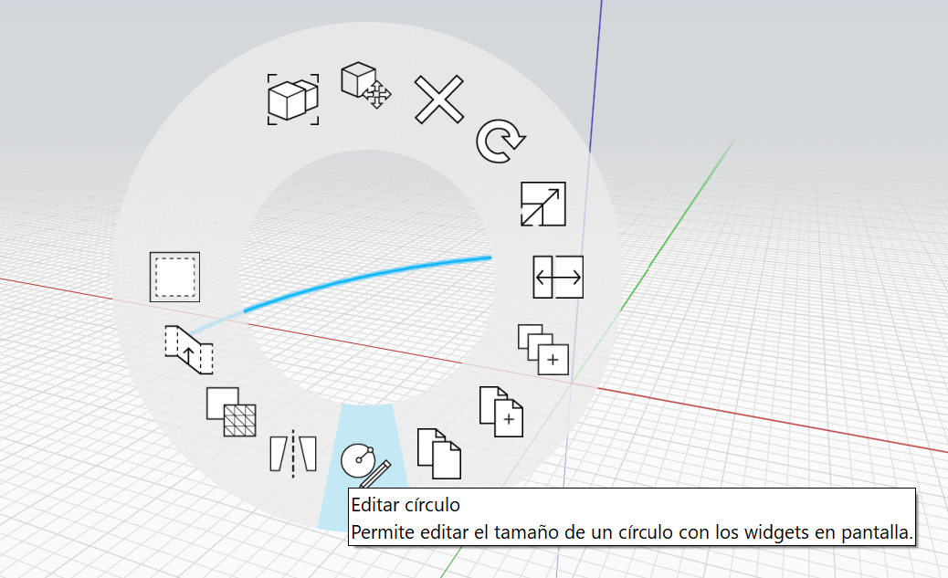 Aparecerán los pinzamientos de edición de arcos, que permiten cambiar el radio, el ángulo o la alineación del arco. El nuevo arco aparecerá como un contorno durante la edición.
