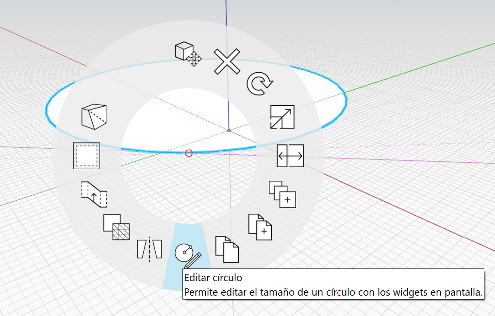 Aparecerán los pinzamientos de edición de círculos, que permiten cambiar el tamaño o la orientación del círculo. El nuevo círculo aparecerá como un contorno durante la edición.