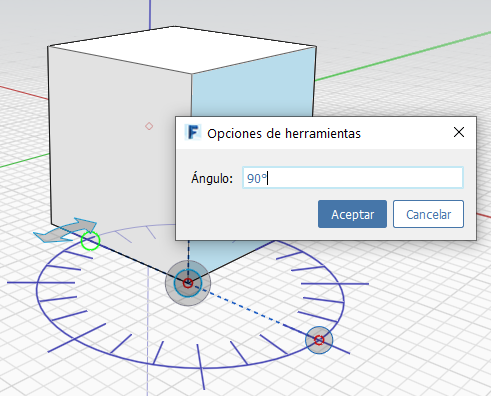 * Para cambiar la geometría, haga clic en un borde o una cara y especifique un nuevo valor de ángulo haciendo clic en el ángulo mostrado.