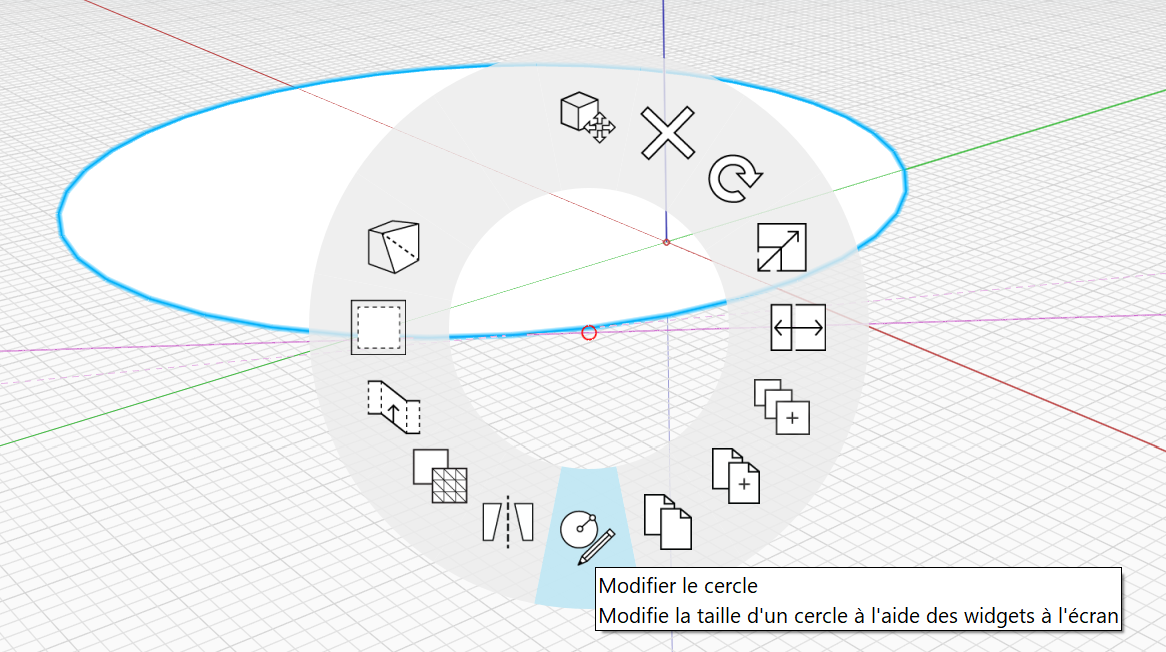 La poignée située en haut détermine la normale/l’orientation du cercle