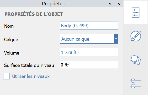La palette Propriétés permet de modifier le groupe d’un objet, d’affecter un objet à un calque et de modifier le matériau d’un objet.