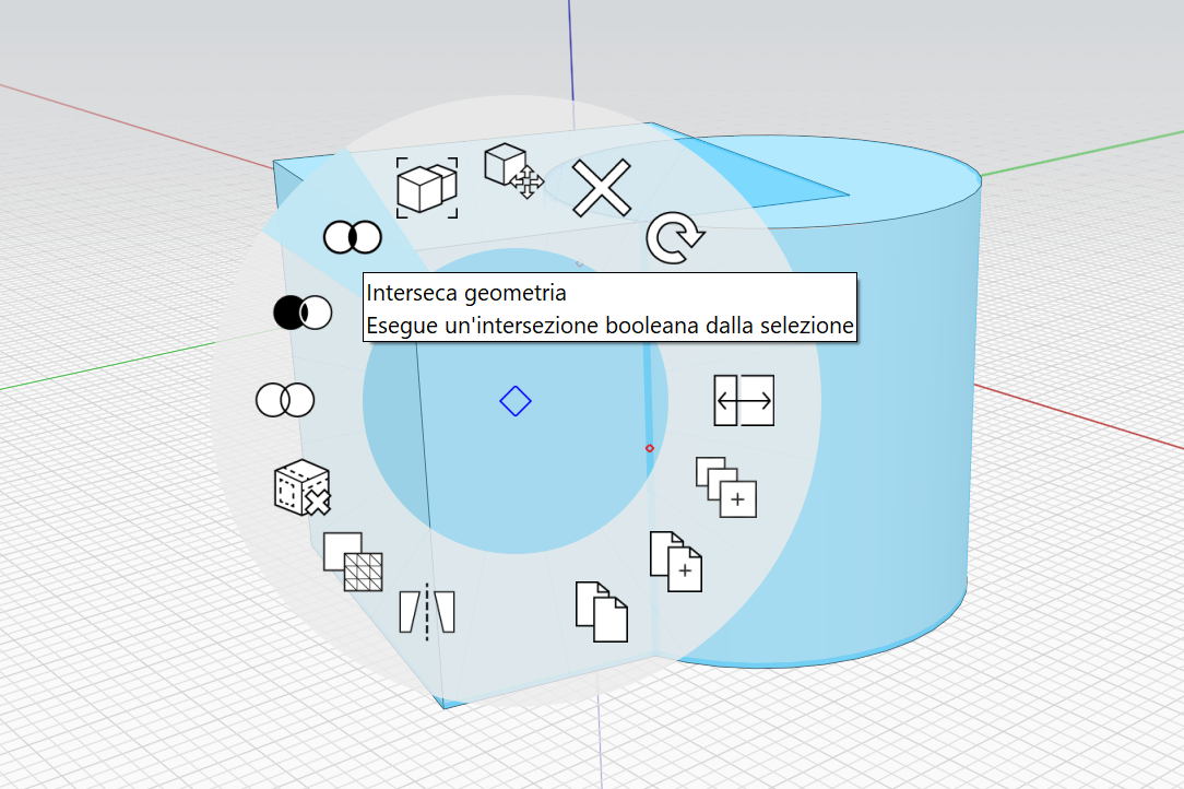 3. Fare clic con il pulsante destro del mouse sull'oggetto che verrà tagliato e scegliere lo **strumento Interseca** nel menu contestuale.