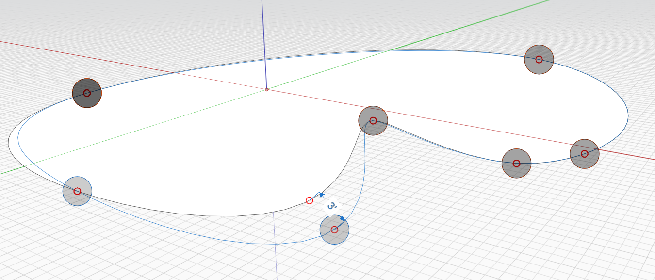 \[スプライスを編集]グリップが表示され、移動できるようになります。新しいスプラインは編集中はアウトラインとして表示されます。