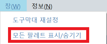 FormIt 2023 이상에서는 윈도우 메뉴에 있는 모든 팔레트 표시/숨기기를 전환하여 팔레트를 최소화/복원할 수 있습니다.