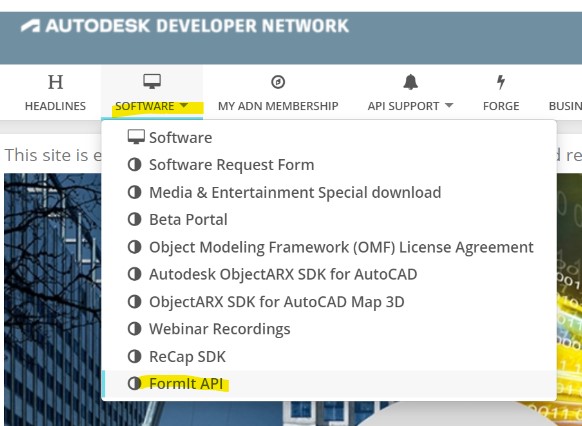 로그인하면 소프트웨어 아래에서 FormIt API를 다운로드할 수 있습니다.