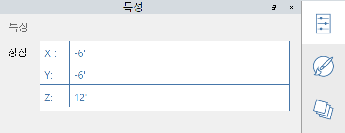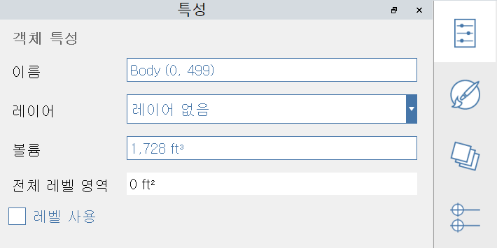 특성 팔레트에는 Formit 작업 기준면에서 선택한 객체와 관련된 정보 및 데이터가 표시됩니다.