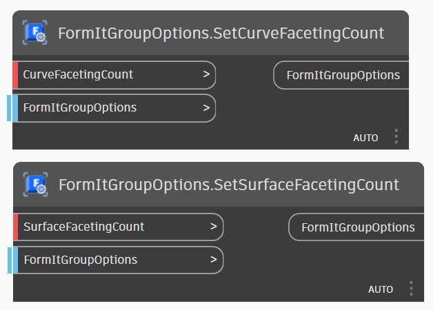 Węzły *FormItGeometryOptions* mogą być używane przed węzłem *SendToFormIt*: