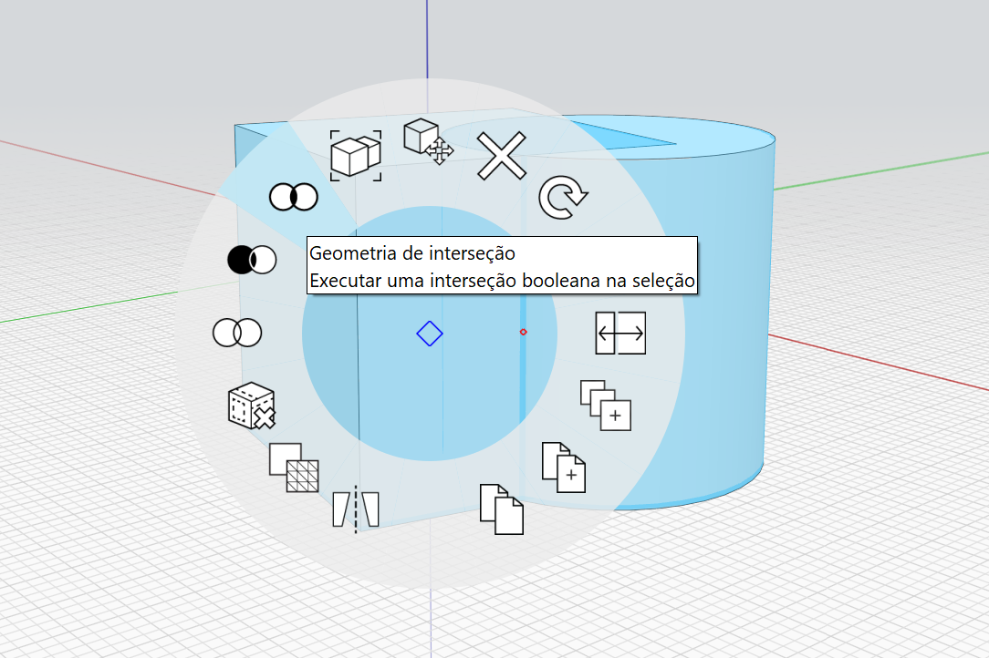 3. Clique com o botão direito do mouse no objeto que será cortado e selecione a **ferramenta Interseção** no menu de contexto.