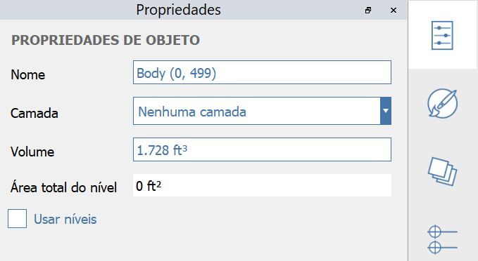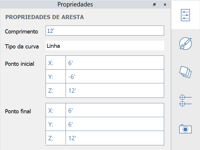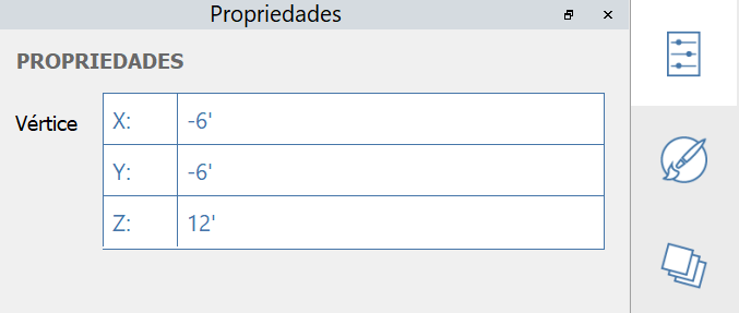 No FormIt 2023 e versões mais recentes, é possível modificar as propriedades de um vértice, de uma aresta, de uma face e de um volume usando a paleta Propriedades: