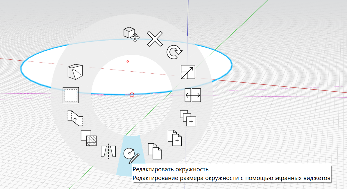 * Ручка в верхней части позволяет управлять нормалью/ориентацией окружности