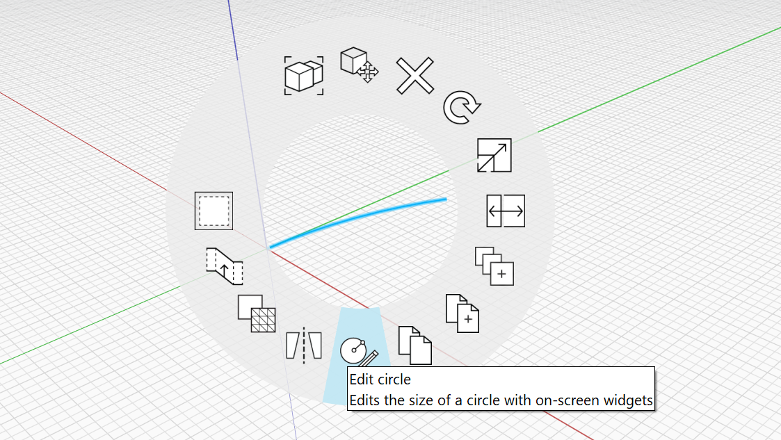 The Edit Arc grips will appear, allowing you to change the radius, angle, or alignment of the arc. The new arc will appear as an outline while editing.