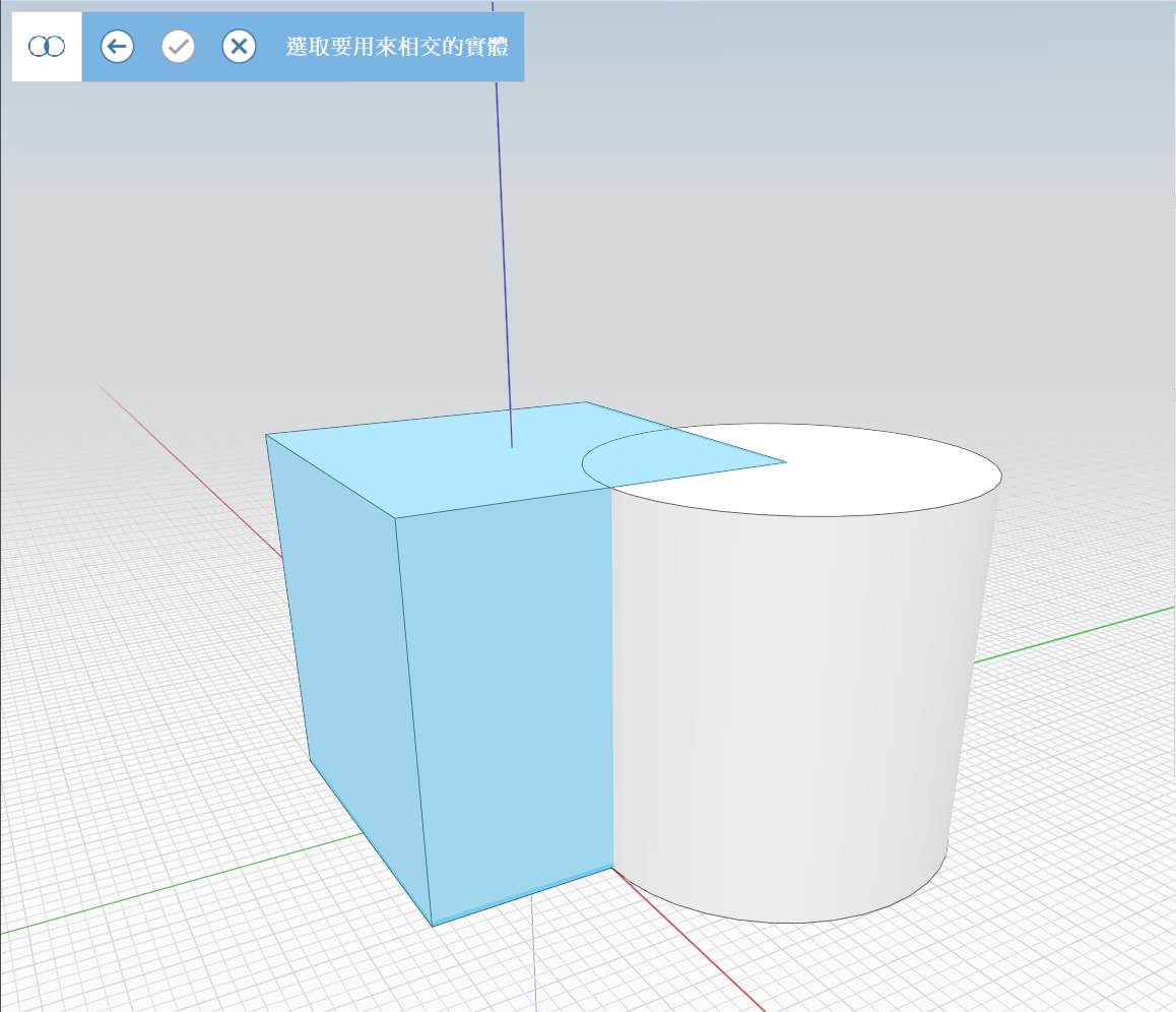 按一下勾號以完成指令。第一個物件將被所選幾何圖形的相交部份取代。如果您不需要物件，可以將其刪除！\\