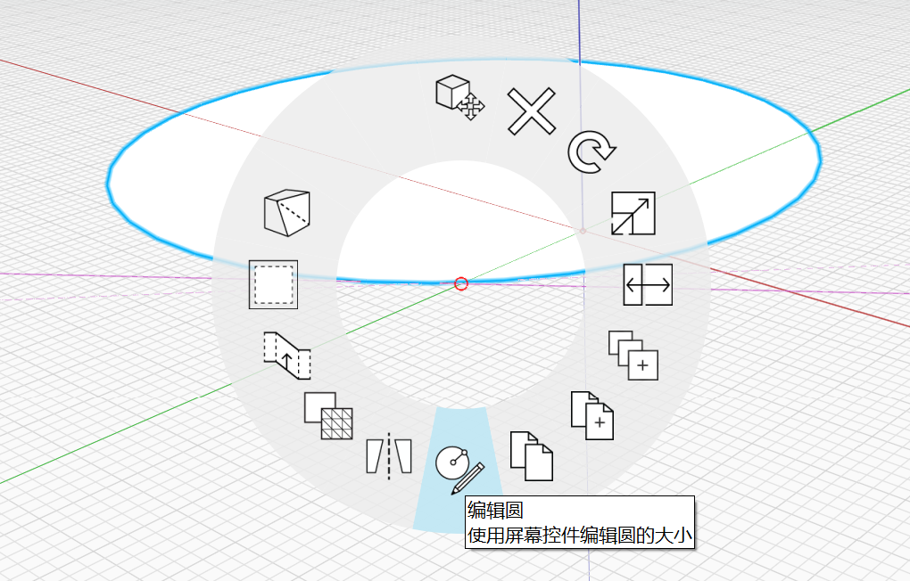 此時會顯示「編輯圓」掣點，讓您變更圓的大小或方位。編輯時，新圓將以輪廓顯示。